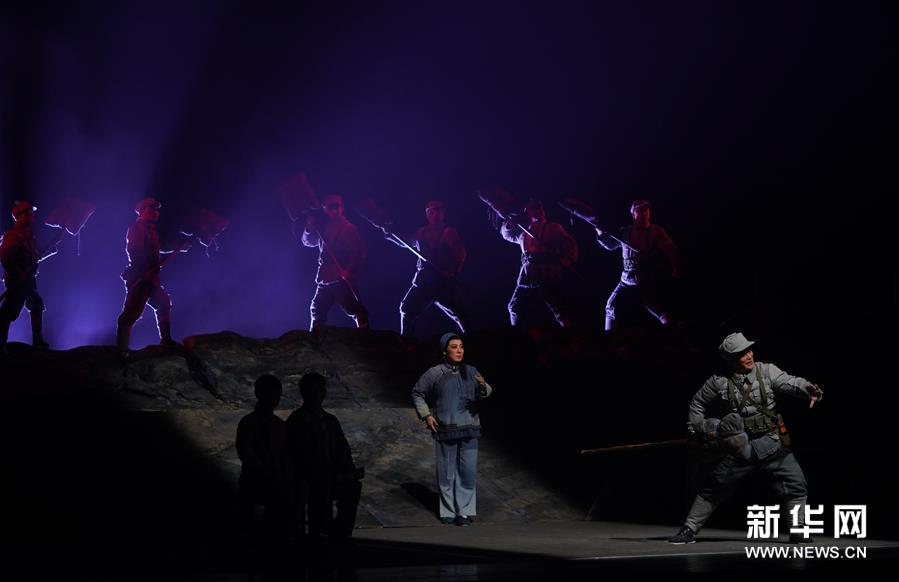 10月10日,演員在徐州梆子現代戲《母親》的表演中。新華社記者 季春鵬 攝