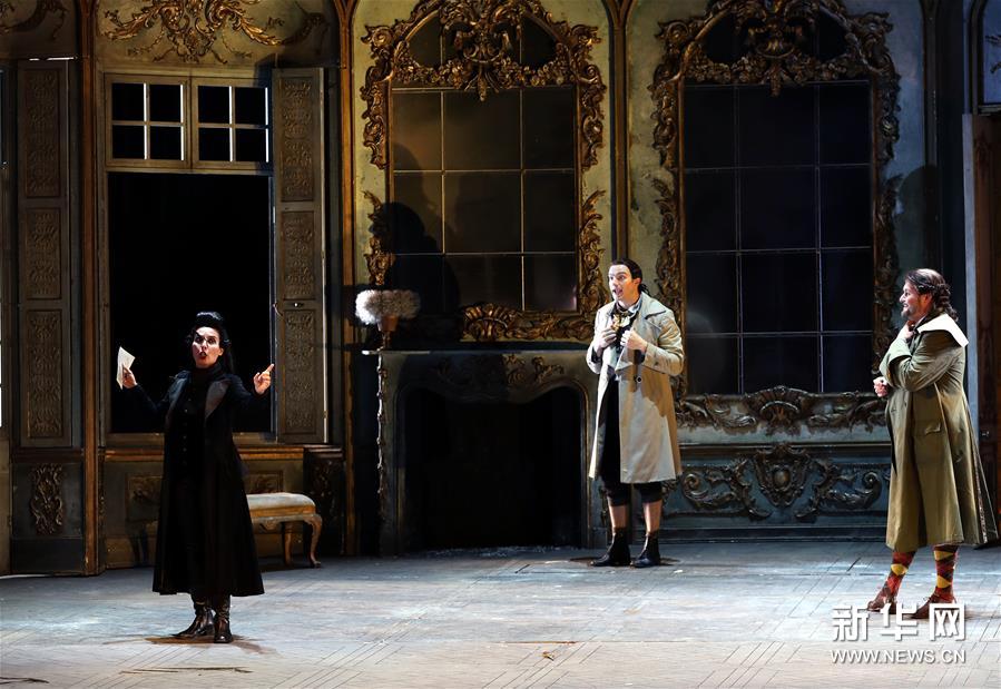 10月15日,意大利斯卡拉歌劇院演員在進行《假扮園丁的姑娘》的彩排。新華社記者 劉穎 攝