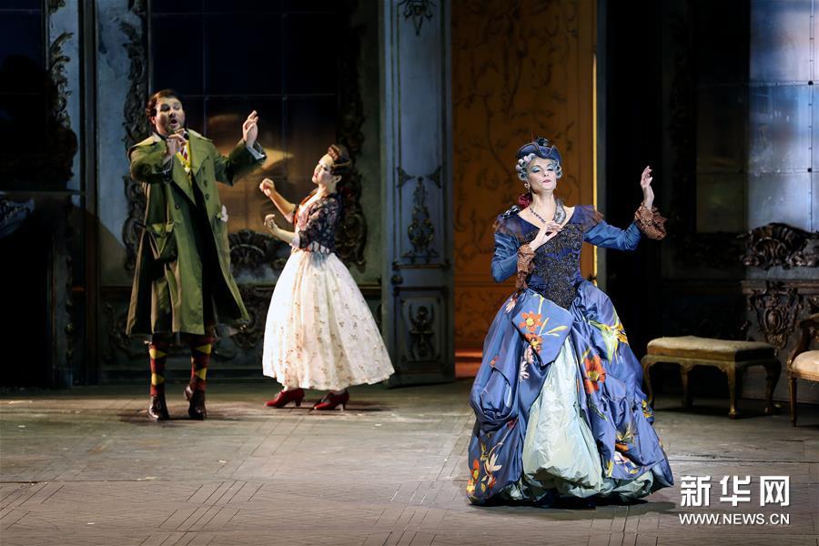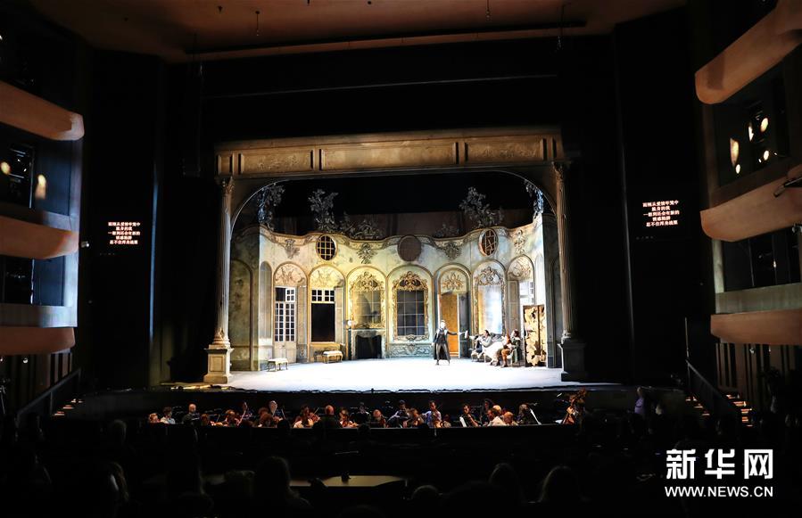 10月15日,意大利斯卡拉歌劇院演員在進行《假扮園丁的姑娘》的彩排。新華社記者 劉穎 攝