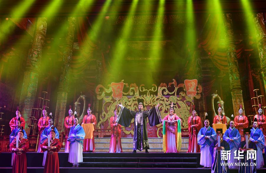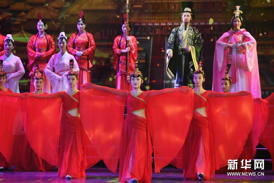 10月19日,演員在表演漢韻情景劇《漢風飛揚》第一幕“高祖登基”。新華社記者陶明攝