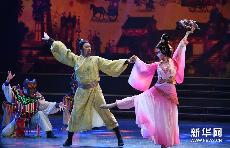 10月19日,演員在表演漢韻情景劇《漢風飛揚》第二幕“天地祥和”。新華社記者陶明攝