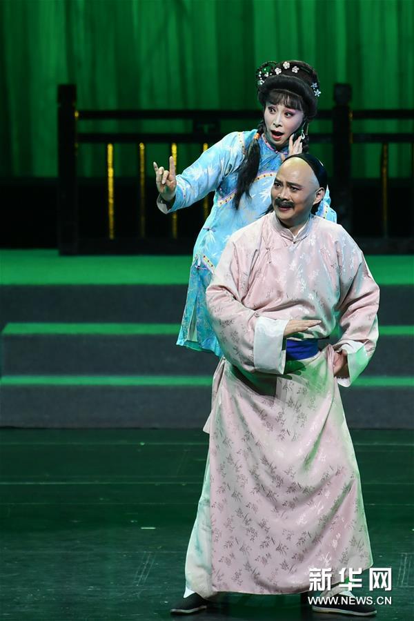 10月21日,由泰州市淮劇團(tuán)演出的古裝淮劇《板橋應(yīng)試》在江蘇南京上演。 新華社記者 李博 攝