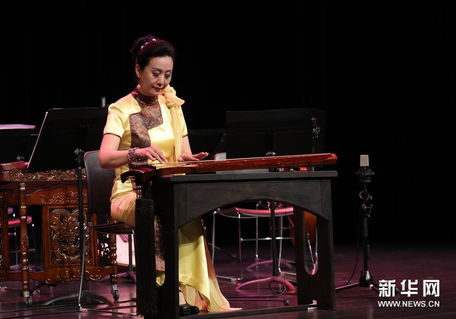 10月22日,在比利時安特衛普,中央民族樂團演員演奏曲目《流水》。新華社記者 潘革平 攝