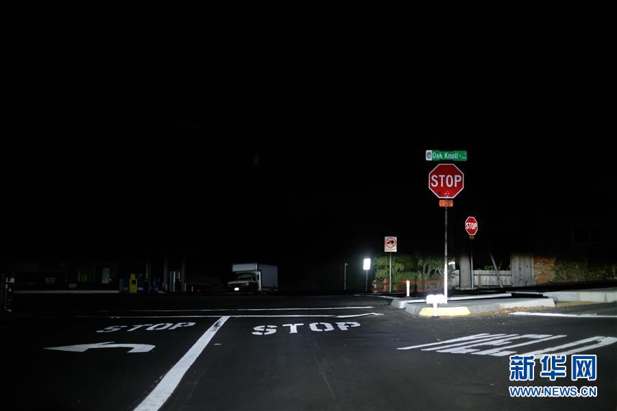 10月28日,在美國加利福尼亞州舊金山灣區(qū)的雷德伍德城,山區(qū)的一處居民區(qū)停電。 為防范強風刮斷電線引燃山林,加州主要的電力企業(yè)太平洋天然氣和電氣公司26日下午開始在加州北部實行預防性斷電措施,涉及36個縣約94萬用戶用電。 新華社記者吳曉凌 攝