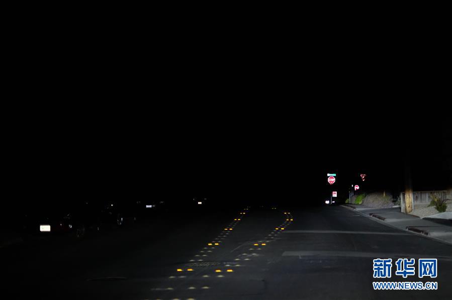 10月28日,在美國加利福尼亞州舊金山灣區的雷德伍德城,山區的一處居民區停電。 為防范強風刮斷電線引燃山林,加州主要的電力企業太平洋天然氣和電氣公司26日下午開始在加州北部實行預防性斷電措施,涉及36個縣約94萬用戶用電。 新華社記者吳曉凌 攝