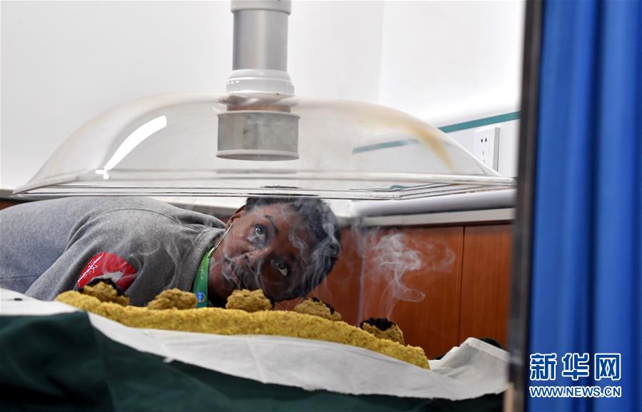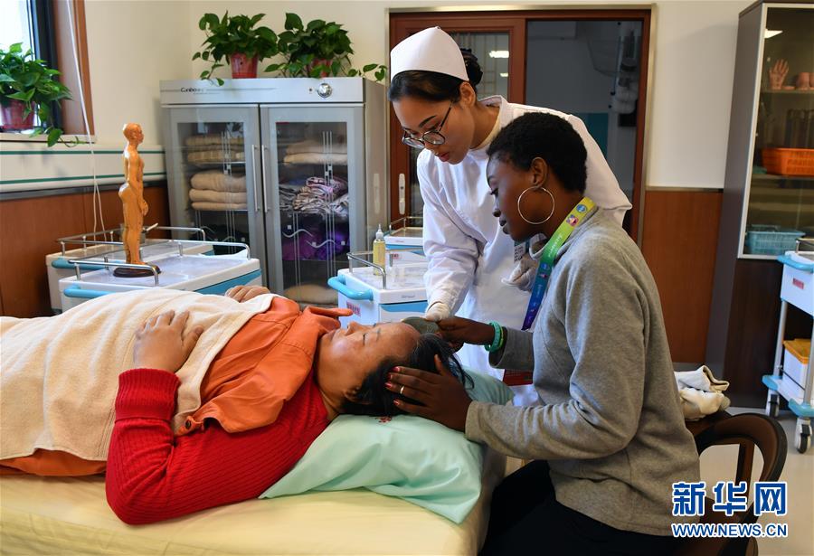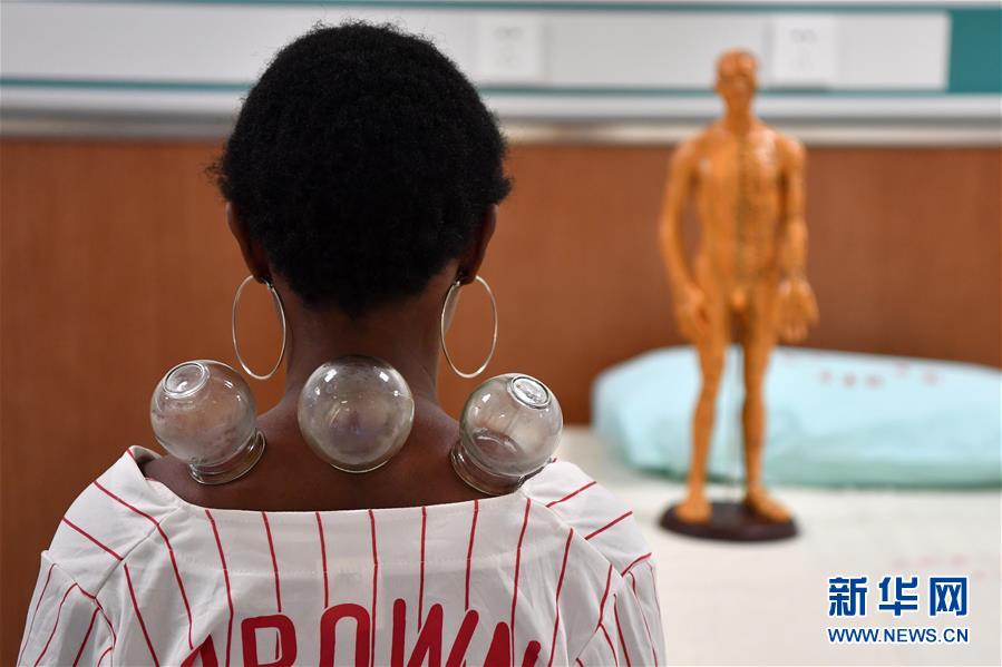 拉一莎在河南省人民醫(yī)院體驗(yàn)拔火罐(10月27日攝)。新華社記者 李嘉南 攝