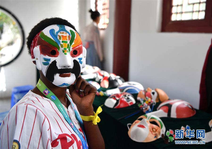 拉一莎在鄭州西亞斯學(xué)院體驗(yàn)畫臉譜(10月28日攝)。新華社記者 李嘉南 攝
