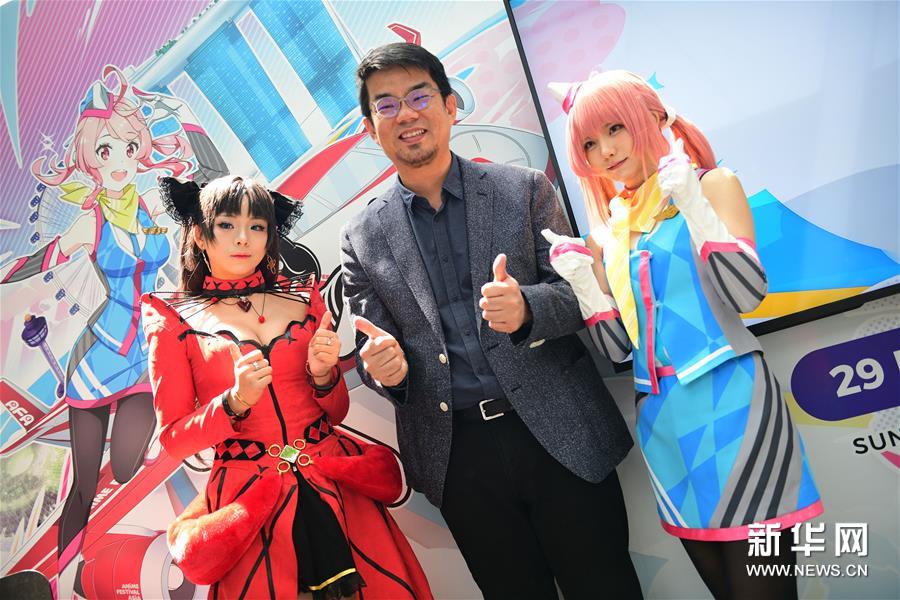 10月30日,新加坡角色扮演者Rithe(左)與日本角色扮演者Enako(右)出席在新加坡樟宜機場的“星耀樟宜”舉行的C3亞洲動漫節記者會。新華社發 (鄧智煒攝)