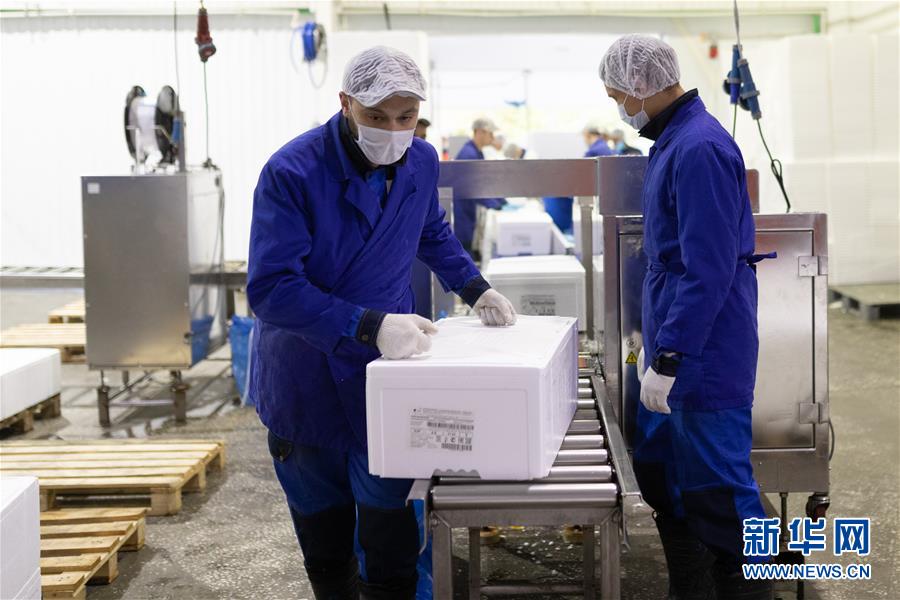 9月13日,在俄羅斯摩爾曼斯克,俄羅斯水產(chǎn)養(yǎng)殖公司工作人員搬運(yùn)已裝箱的鮭魚。 俄羅斯水產(chǎn)養(yǎng)殖公司是俄羅斯大西洋鮭和虹鱒的主要生產(chǎn)商之一。目前,該公司產(chǎn)品在俄市場(chǎng)上占比近20%,在摩爾曼斯克和卡累利阿共和國(guó)均有養(yǎng)殖場(chǎng)。俄羅斯水產(chǎn)養(yǎng)殖公司總經(jīng)理伊利亞·索斯諾夫認(rèn)為,中國(guó)鮭魚消費(fèi)市場(chǎng)潛力巨大?!爸袊?guó)市場(chǎng)對(duì)于我們來說非常重要,我們期待早日進(jìn)入中國(guó)市場(chǎng)……希望我們的鮭魚能贏得中國(guó)消費(fèi)者的喜愛?!?新華社記者白雪騏 攝 |