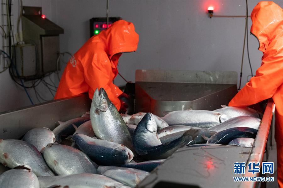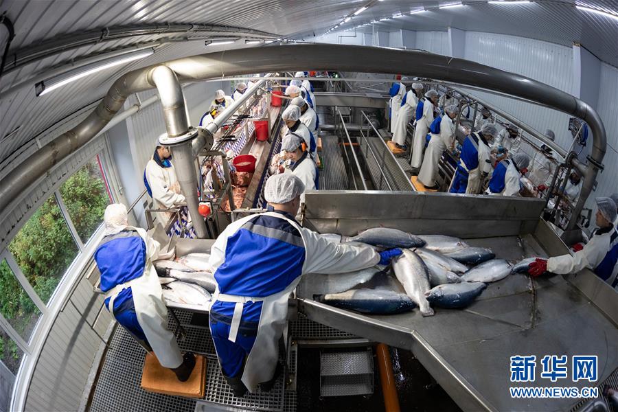 9月13日,在俄羅斯摩爾曼斯克,俄羅斯水產(chǎn)養(yǎng)殖公司工作人員在車間處理鮭魚。 俄羅斯水產(chǎn)養(yǎng)殖公司是俄羅斯大西洋鮭和虹鱒的主要生產(chǎn)商之一。目前,該公司產(chǎn)品在俄市場(chǎng)上占比近20%,在摩爾曼斯克和卡累利阿共和國(guó)均有養(yǎng)殖場(chǎng)。俄羅斯水產(chǎn)養(yǎng)殖公司總經(jīng)理伊利亞·索斯諾夫認(rèn)為,中國(guó)鮭魚消費(fèi)市場(chǎng)潛力巨大。“中國(guó)市場(chǎng)對(duì)于我們來(lái)說(shuō)非常重要,我們期待早日進(jìn)入中國(guó)市場(chǎng)……希望我們的鮭魚能贏得中國(guó)消費(fèi)者的喜愛(ài)。” 新華社記者白雪騏 攝