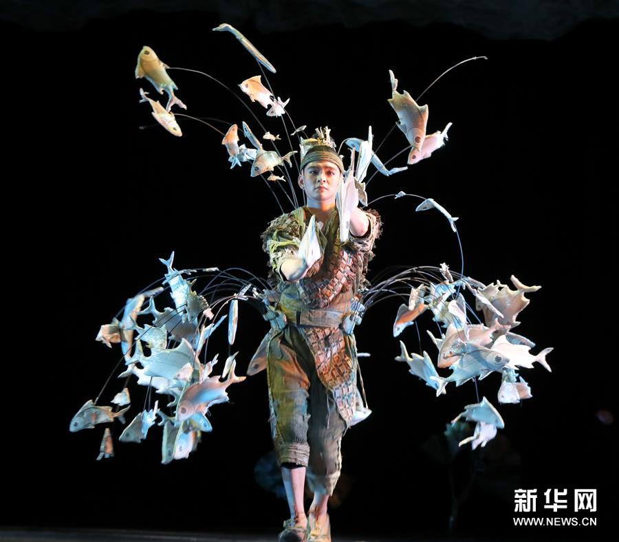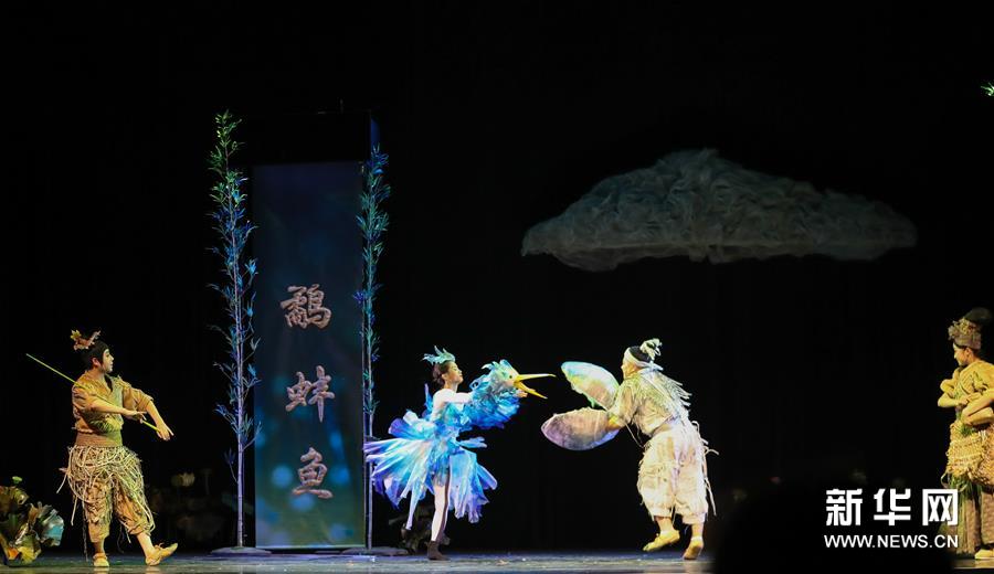 11月2日,在美國加利福尼亞州舊金山灣區坎貝爾,演員表演兒童劇《鶴·蚌·魚》。新華社發(董旭東攝)