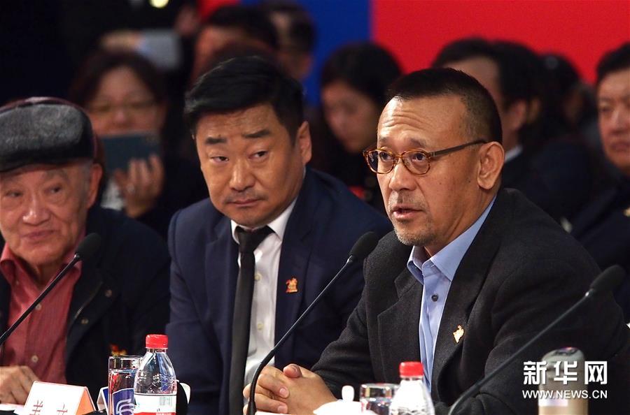 11月16日,上海電影集團(tuán)在“海上電影五號(hào)棚”舉行慶祝上海電影制片廠成立70周年座談會(huì),演員姜文(右)在座談會(huì)上發(fā)言。新華社記者 任瓏 攝