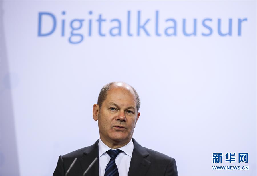 11月18日,在德國(guó)柏林以北的梅澤貝格,德國(guó)副總理兼財(cái)政部長(zhǎng)肖爾茨出席新聞發(fā)布會(huì)。 德國(guó)政府18日通過(guò)一項(xiàng)“移動(dòng)通信戰(zhàn)略”,旨在加強(qiáng)移動(dòng)通信基礎(chǔ)設(shè)施建設(shè),并為5G網(wǎng)絡(luò)發(fā)展創(chuàng)造條件。 新華社記者 單宇琦 攝
