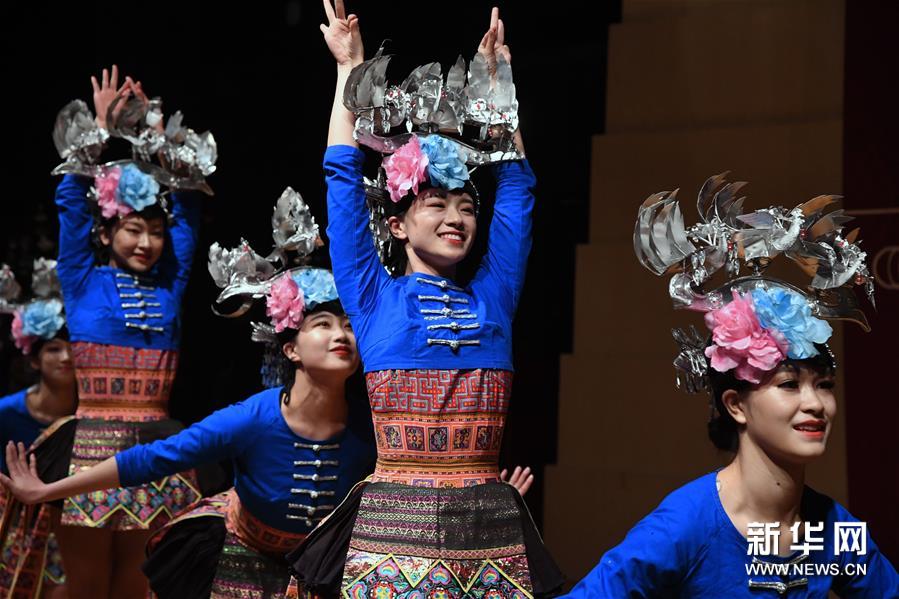 11月23日,演員在表演苗族《錦雞舞》。新華社發(fā)(任超攝)