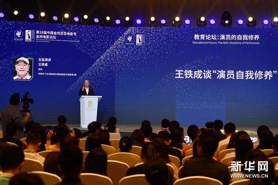 11月23日,演員王鐵成在第28屆中國金雞百花電影節(jié)教育論壇上演講。新華社記者姜克紅攝