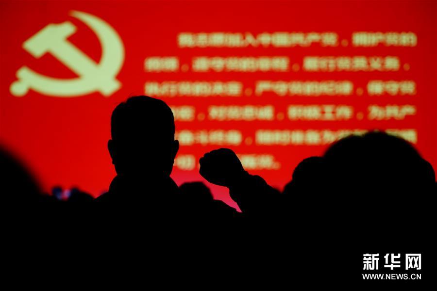 11月26日,觀看演出的黨員在演出結束后重溫入黨誓詞。新華社記者 邢廣利 攝