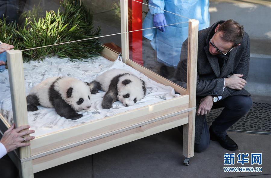 這是12月9日在德國柏林動物園拍攝的大熊貓雙胞胎“夢想”(右)與“夢圓”。 在德國柏林動物園出生百天的大熊貓雙胞胎9日被正式命名為“夢想”“夢圓”。 新華社記者 單宇琦 攝 新華社柏林12月9日電(記者田穎)德國柏林動物園9日為在該園出生滿百天的一對熊貓雙胞胎舉行官方命名儀式,這兩只雄性幼崽分別得名“夢想”和“夢圓”。 6歲的旅德大熊貓“夢夢”今年8月31日誕下“夢想”和“夢圓”。柏林動物園稱,根據中國習俗,新生兒在百天時取名。命名儀式上,“夢想”和“夢圓”由飼養員用推車推出,接受媒體拍攝。 中國駐德國大使吳懇在命名儀式上致辭表示,此次在柏林動物園能順利誕下熊貓雙胞胎,是中德雙方科研團隊共同努力的成果。“夢想”和“夢圓”意味著“美夢成真”,寄托了對于中德兩國友誼的美好祝愿。 柏林市市長米夏埃爾·穆勒在致辭時說,柏林所有的動物迷們都興奮地關注著熊貓雙胞胎的成長,它們對于柏林來說是美好的禮物。 “夢夢”和雄性大熊貓“嬌慶”于2017年6月抵達柏林。根據柏林動物園與中國野生動物保護協會簽署的大熊貓保護研究合作協議,“夢夢”和“嬌慶”將在德國生活15年。“夢想”和“夢圓”將在柏林生活兩至四年,之后回到中國。