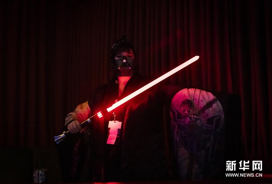 12月19日,在美國(guó)加利福尼亞州好萊塢的一個(gè)影院,影迷手持“光劍”參加《星球大戰(zhàn)》系列電影觀影馬拉松活動(dòng)。新華社/歐新