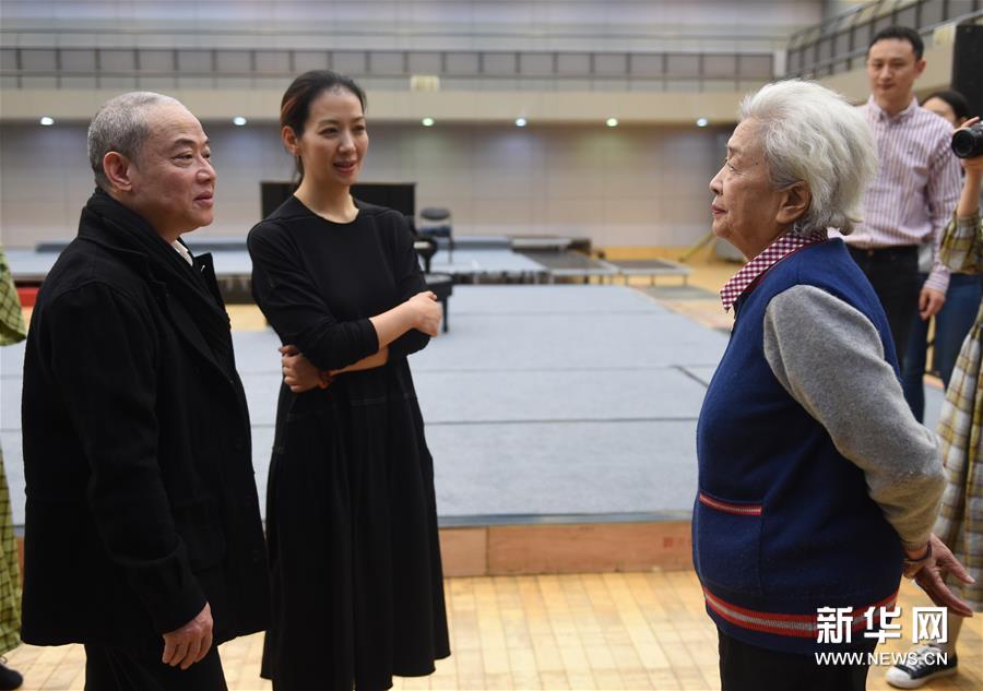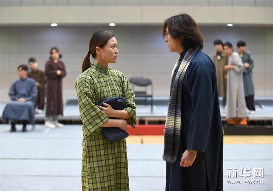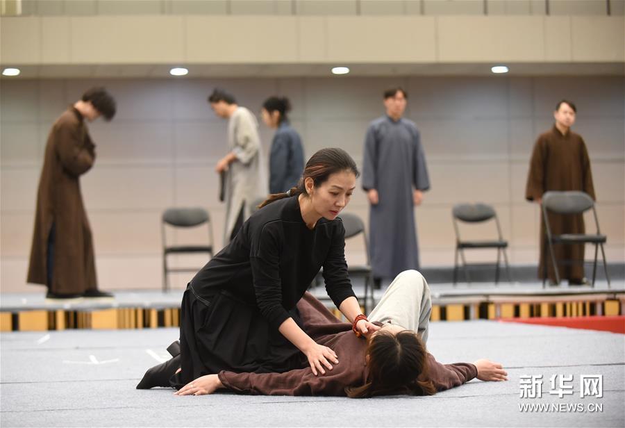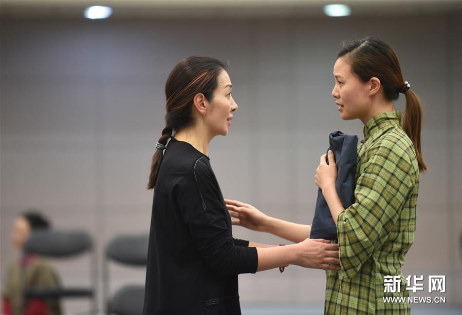 12月26日,在話劇《二月》中飾演陶嵐的演員盧芳(前左)在排練。新華社記者 羅曉光 攝