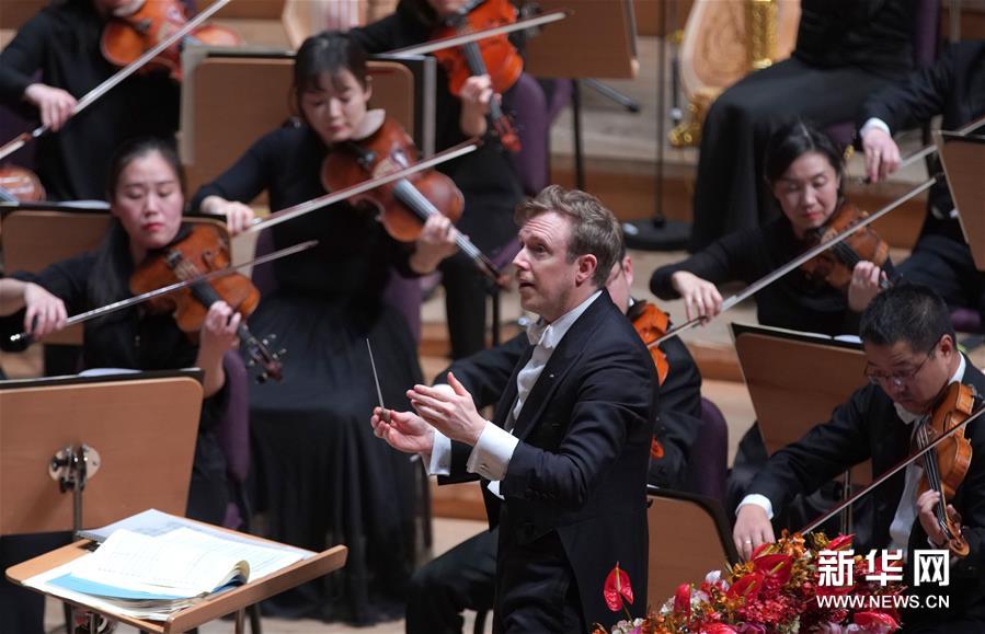2019年12月31日,丹尼爾·哈丁在上海交響樂團音樂廳指揮“2020上海新年音樂會”。新華社記者 任瓏 攝