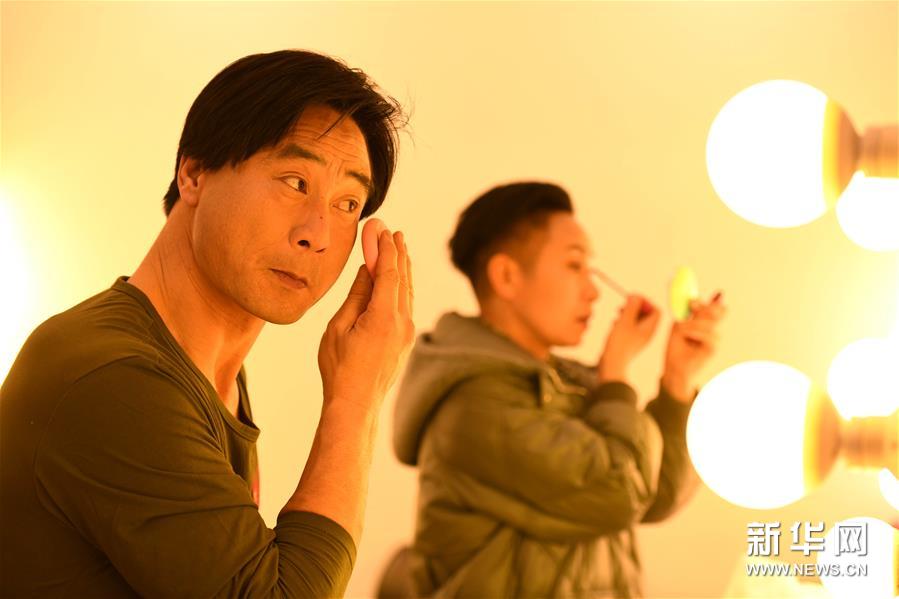 2019年12月31日,在河北石家莊絲線劇院,深澤墜子戲演員在做演出前準(zhǔn)備。新華社發(fā)(陳其保 攝)