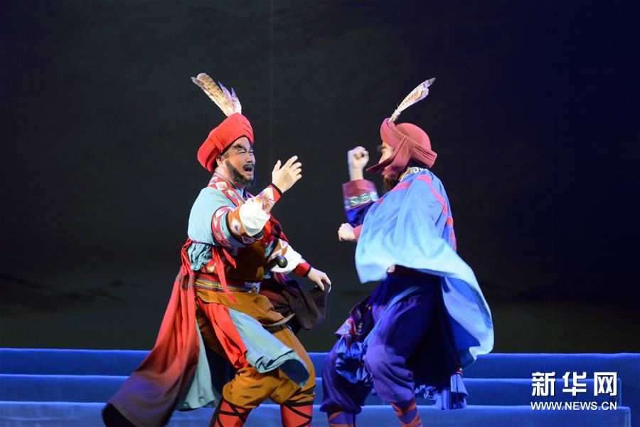 1月5日,演員在廣州友誼劇院表演戲曲音樂劇《冼夫人》。新華社發(許建梅 攝)