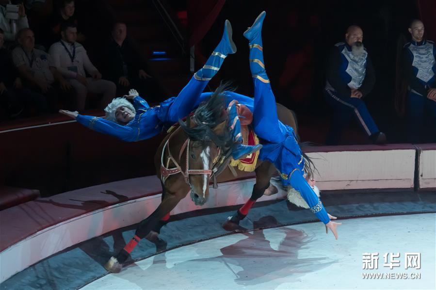 1月8日,在匈牙利布達佩斯,俄羅斯雜技演員在布達佩斯國際馬戲節上表演。新華社發(弗爾季·奧蒂洛攝)