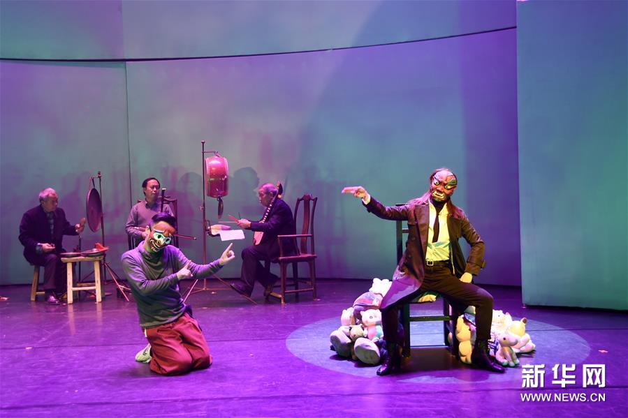 陜西大劇院年度自制賀歲皮影喜劇《封存的皮影寶盒之閻王樂》(1月15日攝)。新華社記者 蔡馨逸 攝 “以《閻王樂》作為戲劇核心,提取皮影戲的主要元素,把戲曲和戲劇結合,用演員替代皮影表演,將幕后的藝人請到臺前,讓觀眾把皮影戲的臺前和幕后盡收眼底,我們用這樣的方式對皮影戲做了創新。”“封存的皮影寶盒”系列作品制作人、陜西大劇院項目經理張嘉偉說。 2016年,陜西大劇院啟動了“封存的皮影寶盒”項目,邀請老藝人一起探索皮影戲的創新表達。張嘉偉說,皮影傳承了千年,但現在卻因得不到年輕人的喜愛面臨斷檔,這個項目是想讓年輕人了解皮影,喜歡上這門古老的藝術。2017年,將行為藝術與皮影戲相結合的戲劇《封存的皮影寶盒》登上了第70屆愛丁堡國際藝術節的舞臺。 在舞臺上,陜西省省級非遺項目同朝皮影代表性傳承人王進法和他的戲班子用最原汁原味的唱腔為整部戲劇點睛,贏得了現場觀眾的熱烈掌聲。 這不是王進法第一次走進劇院參與非遺文化的創意舞臺呈現。今年78歲的王進法是陜西省渭南市大荔縣人,15歲從藝,隨著皮影戲一起走過人生沉浮。20世紀六七十年代,皮影戲的土壤在鄉村,王進法跟著戲班子在農村“巡回”演出,到了九十年代,皮影戲的生存空間急劇萎縮,原先在大荔縣活躍著的數十家皮影戲班只剩下了兩家。近年來,在農村的演出少了,走進大劇院的機會多了,王進法從幕布后走到舞臺前,皮影從“獨角戲”變成了舞臺藝術中的重要元素。除了登上北京、上海、深圳等地的舞臺,王進法還去過美國、英國、法國等國家演出。 “種種創新給皮影戲提供了與時俱進的發展方案,相信能讓更多年輕人對皮影戲產生興趣,改變傳承困境。”王進法說。 |