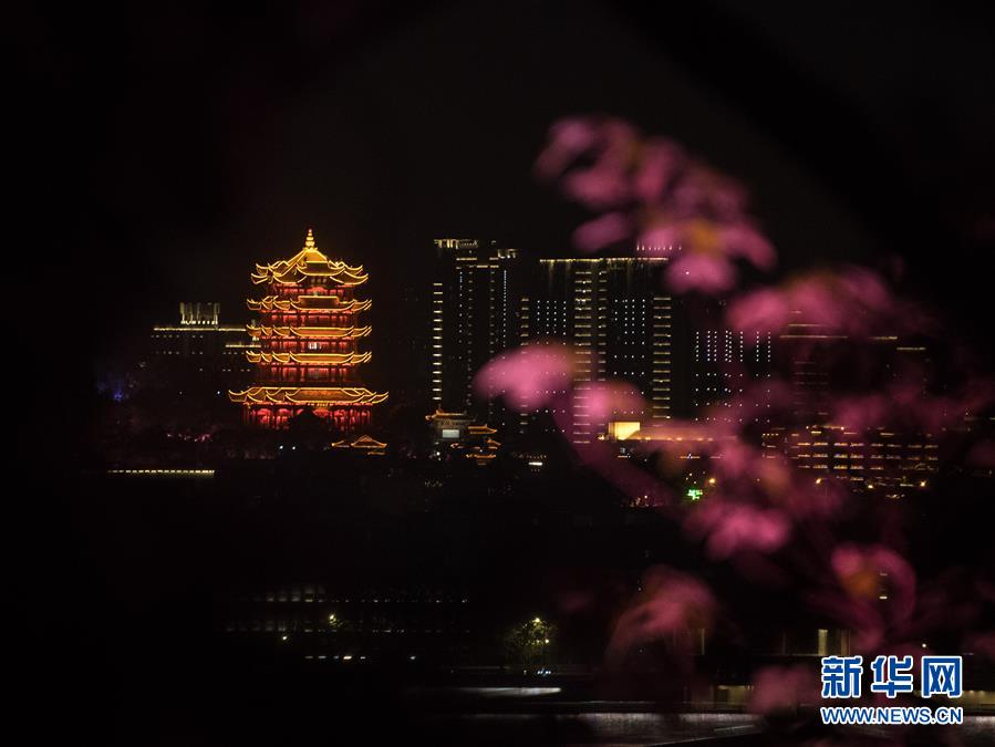這是4月7日晚在武漢龜山拍攝的黃鶴樓夜景。 新華社記者 肖藝九 攝