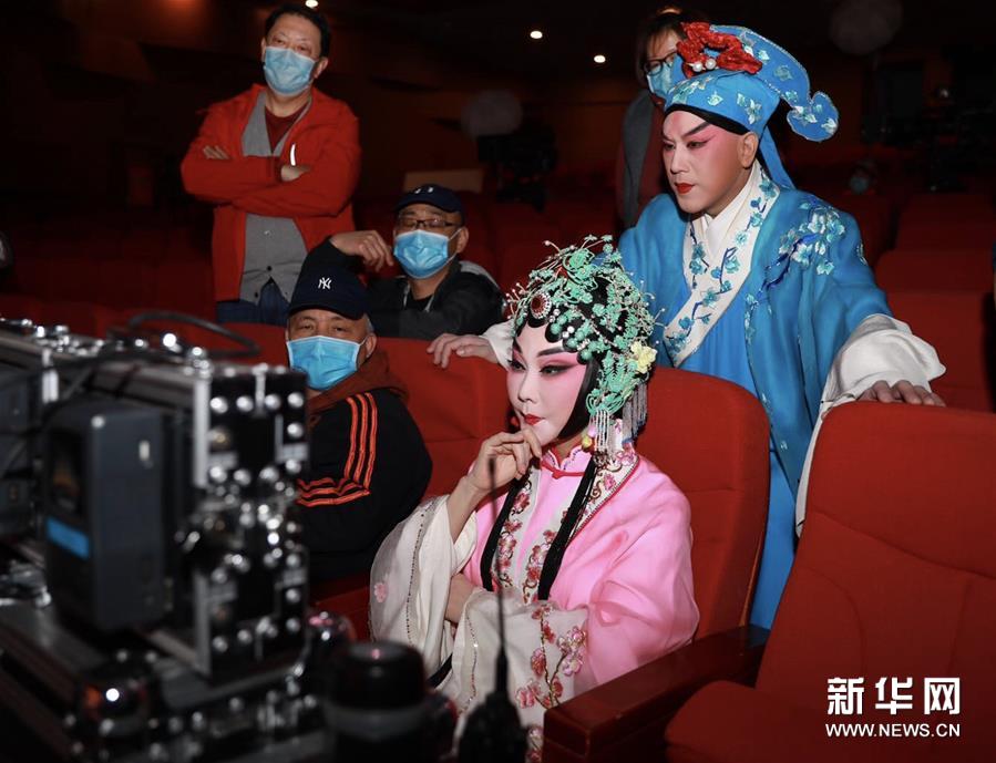新編傳統(tǒng)評劇《趙錦棠》“像音像”錄制現(xiàn)場(4月5日攝)。新華社發(fā)(天津評劇院供圖)
