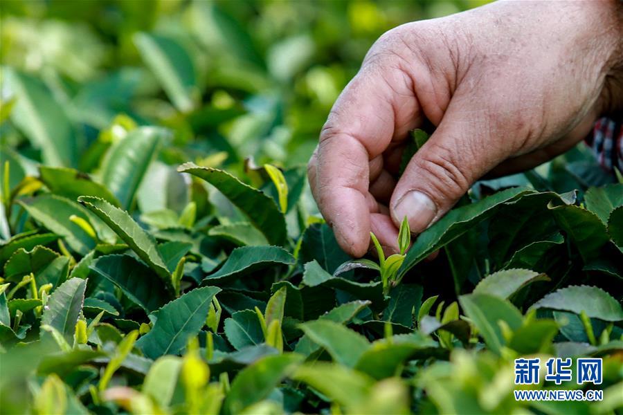 4月9日,茶農在羊艾茶園內采茶。 清明過后,位于貴州省貴安新區(qū)的羊艾茶園春色怡人,呈現(xiàn)出一幅美麗的春季畫卷。 新華社記者 歐東衢 攝