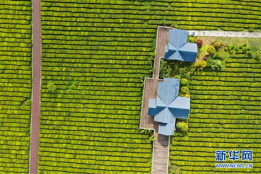 4月9日拍攝的羊艾茶園風(fēng)光(無(wú)人機(jī)照片)。 清明過(guò)后,位于貴州省貴安新區(qū)的羊艾茶園春色怡人,呈現(xiàn)出一幅美麗的春季畫(huà)卷。 新華社記者 歐東衢 攝