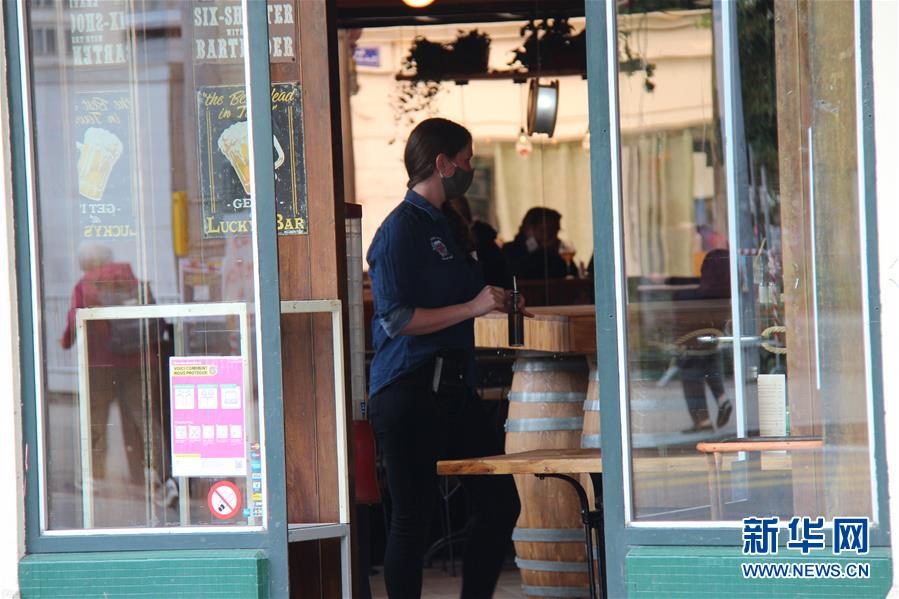 5月11日,瑞士日內(nèi)瓦一家酒吧的服務員戴著口罩為顧客服務。 當日是瑞士允許酒吧餐館等重新開業(yè)第一天。 新華社記者 聶曉陽 攝
