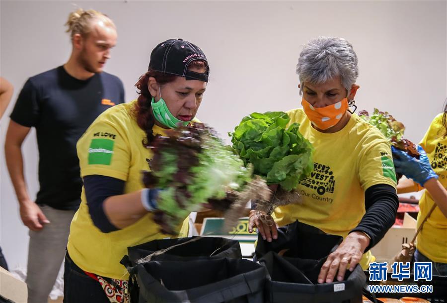 5月21日,在澳大利亞悉尼環(huán)形碼頭,工作人員配置救濟(jì)食品。 當(dāng)日,悉尼市政府向受疫情影響的海外留學(xué)生和臨時(shí)簽證持有者發(fā)放救濟(jì)食品。 新華社記者 白雪飛 攝