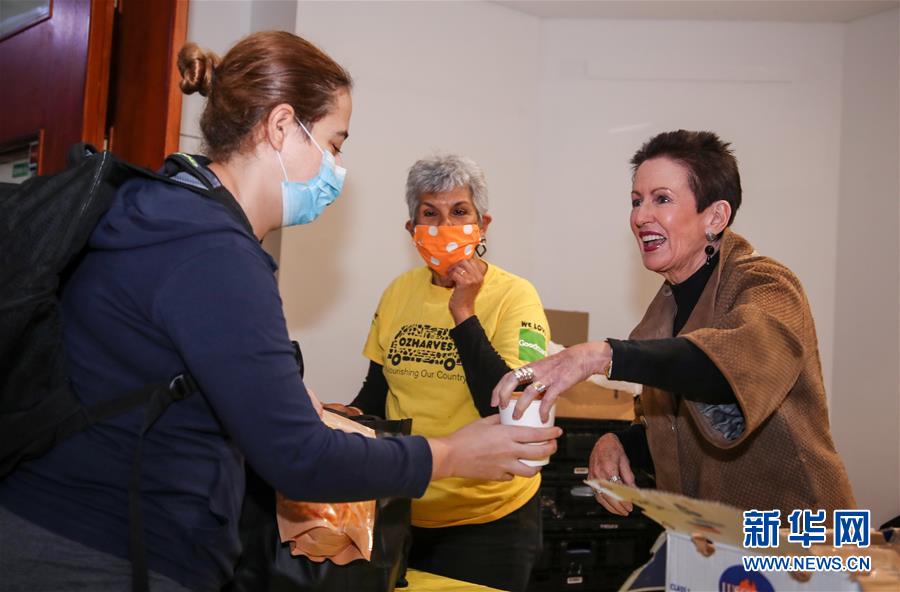 5月21日,在澳大利亞悉尼環形碼頭,海外留學生領取救濟食品。 當日,悉尼市政府向受疫情影響的海外留學生和臨時簽證持有者發放救濟食品。 新華社記者 白雪飛 攝
