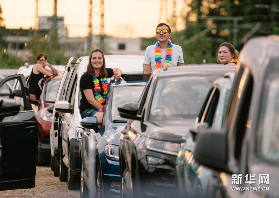 6月13日,觀眾在德國波恩市坐在車上觀看汽車音樂會。新華社發(fā)(唐穎攝)