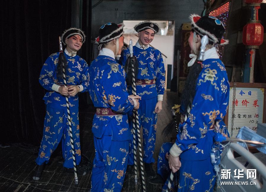6月26日,在武漢市人民劇院,演員們在登臺前準備。 當日,武漢市中心7家劇場恢復開放,各大文藝院團恢復線下演出,市民再次坐在劇場內觀看“戲碼頭”上群星云集、百戲薈萃。 新華社記者 肖藝九 攝