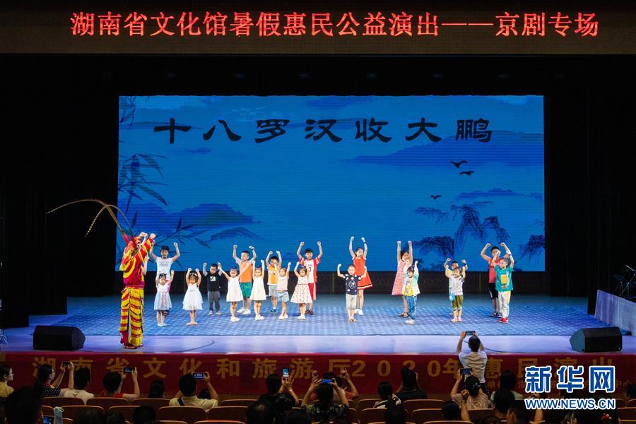8月11日,在湖南省文化館,觀眾登臺體驗京劇表演。 當日,湖南省文化館攜手湖南省京劇保護傳承中心舉辦“京劇藝術普及暑期惠民演出”活動。演出寓教于樂,不僅豐富廣大少年兒童的暑期生活,還讓他們從中學習到京劇的相關知識。 新華社記者 陳思汗 攝