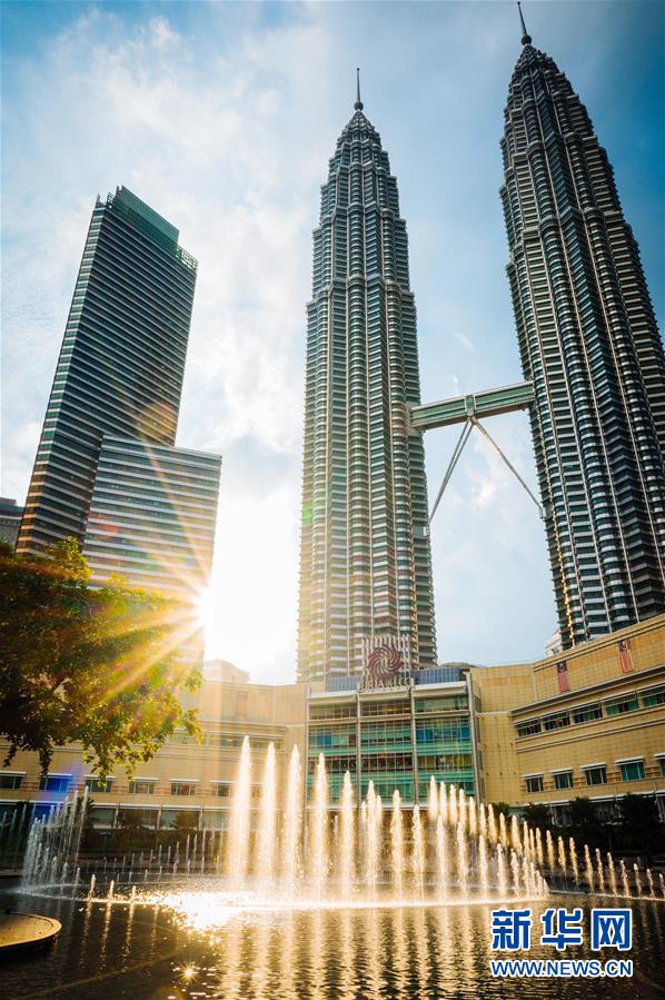 這是2020年8月6日拍攝的夕陽下的馬來西亞吉隆坡市中心景色。 新華社記者 朱煒 攝
