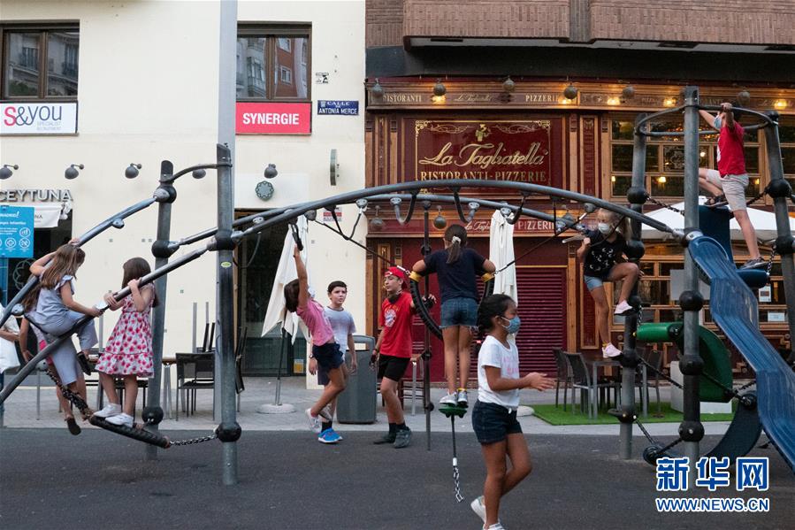 9月6日,在西班牙馬德里,小朋友們在公園內玩耍。 根據西班牙衛生部9月7日更新的數據顯示,該國累計新冠確診病例525549例。 新華社記者 孟鼎博 攝