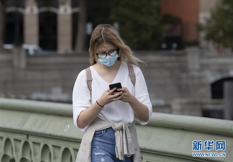 9月8日,一名戴口罩的女子從英國倫敦的威斯敏斯特橋上走過。 英國衛生部數據顯示,英國6日新增確診病例2988例,創5月以來單日新增確診病例最高紀錄;7日新增確診病例2948例。衛生大臣馬修·漢考克7日說,這一狀況“令人擔憂”,但政府依然能夠控制疫情蔓延。 新華社記者 韓巖 攝