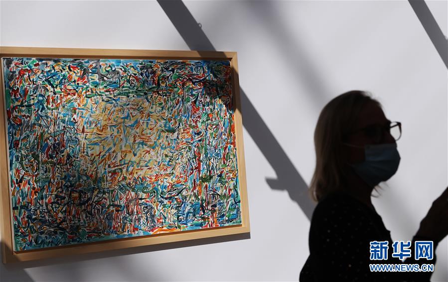 9月9日,一名女子在法國巴黎大皇宮舉行的2020巴黎藝術博覽會預展上欣賞展品。 2020巴黎藝術博覽會于9月10日至13日在法國巴黎大皇宮舉行,來自15個國家和地區的112家畫廊參加。受新冠疫情影響,原定于4月初舉辦的巴黎藝術博覽會推遲了半年舉行。現場配備免洗消毒洗手液,所有人員必須佩戴口罩并保持安全距離。 新華社記者 高靜 攝