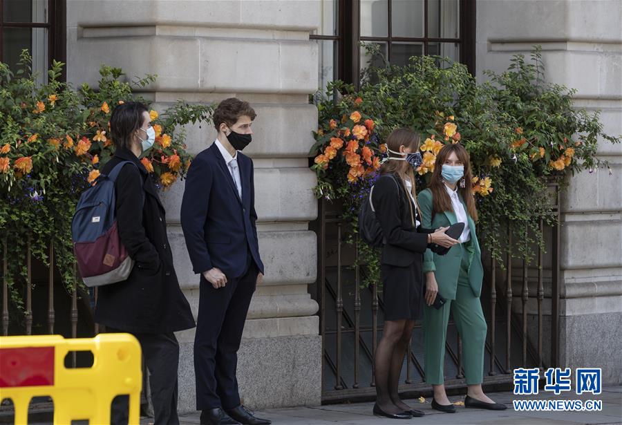 9月12日,人們在英國倫敦戴口罩出行。 英國衛生部11日發布調查報告說,英格蘭新冠病毒感染水平近期呈現上升趨勢,本地民眾有必要提高警覺。 新華社記者 韓巖 攝