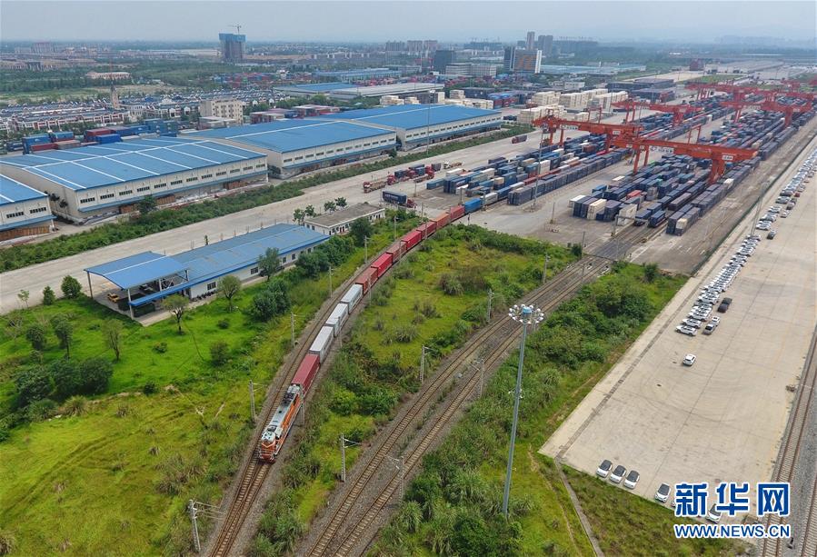 8月5日,一輛滿載防疫物資和百貨商品的中歐班列從成都國際鐵路港發出,開往德國杜伊斯堡(無人機照片)。 今年年初以來,在多個區域因新冠疫情大范圍斷航的情況下,中歐班列交出亮眼成績單。最新數據顯示,今年8月,中歐班列累計開行1247列、發送貨物11萬標箱,同比分別增長62%、66%,在疫情防控、復工復產和穩定全球供應鏈等方面持續發揮作用。中歐班列成為后疫情時代中歐經貿往來日益密切的縮影。 新華社記者 劉坤 攝