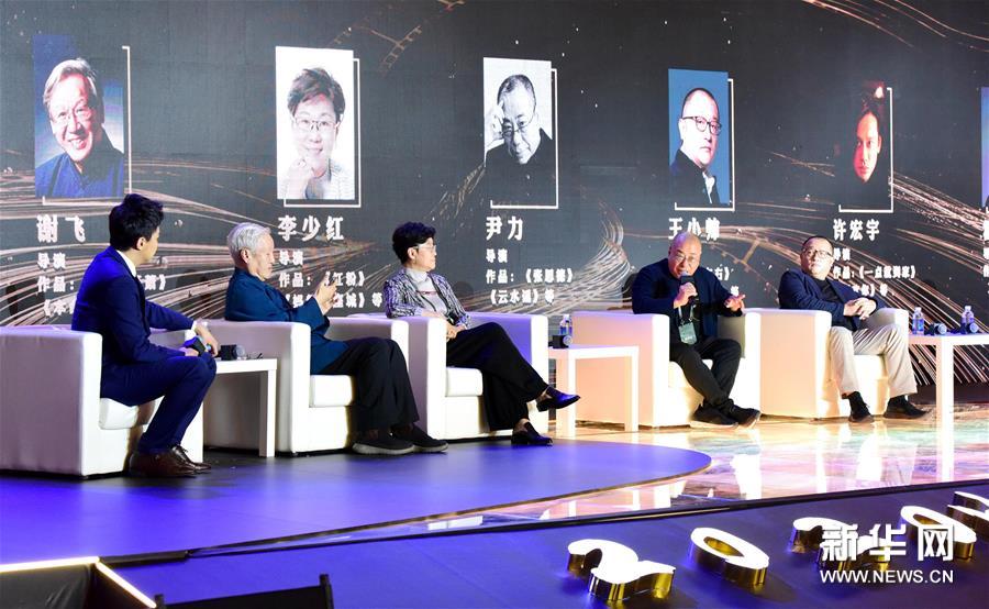 9月24日,導演謝飛、李少紅和尹力(由左至右)在論壇上。 新華社記者 朱祥 攝
