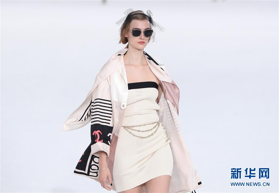 10月6日,在法國巴黎大皇宮,模特展示香奈兒2021春夏新品成衣。 當日,法國品牌香奈兒2021春夏成衣展在巴黎大皇宮舉行。為防控疫情,秀場門口為每位嘉賓準備口罩和消毒洗手液,嚴格限制媒體記者和嘉賓人數,要求大家保持社交距離。 新華社記者 高靜 攝