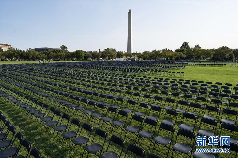 10月4日,在美國首都華盛頓,2萬把椅子擺放在白宮外南側草坪上,悼念美國超過20萬新冠逝者。新華社記者劉杰攝