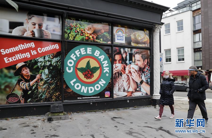 10月13日,人們從英國倫敦一家即將開業的咖啡店前經過。 英國政府13日報告顯示,英國單日新增新冠死亡病例143例,創近期新高,累計死亡病例達43018例。 新華社記者 韓巖攝