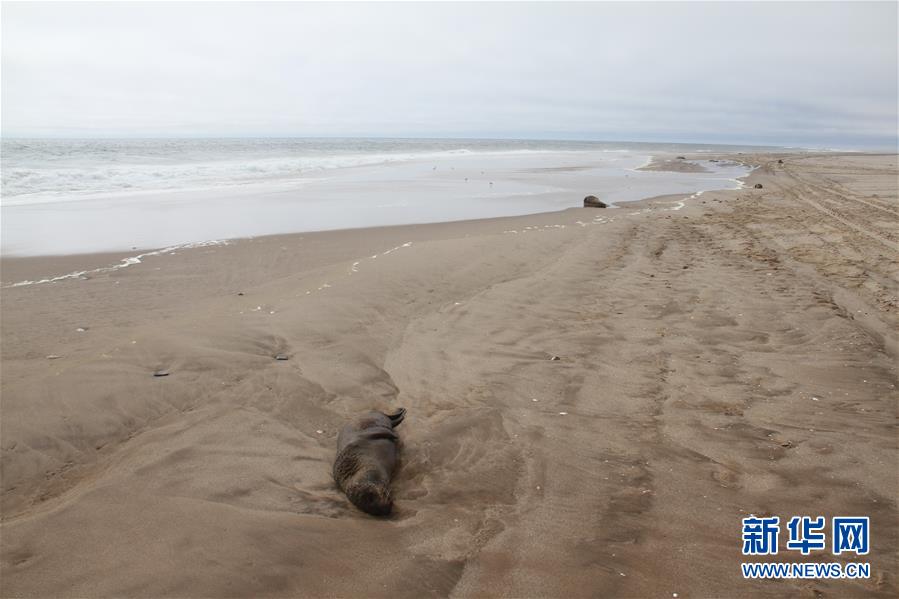 這是10月16日在納米比亞海濱城市沃爾維斯灣的佩利肯角海岸拍攝的海豹尸體。 納米比亞自然保護機構“納米比亞海洋保護”14日報告,他們在納米比亞海濱城市沃爾維斯灣的佩利肯角海岸發現大量小海豹尸體,估計有5000多頭。納米比亞漁業與海洋資源部已確認大量小海豹死亡情況,正在調查原因。 新華社記者 吳長偉 攝