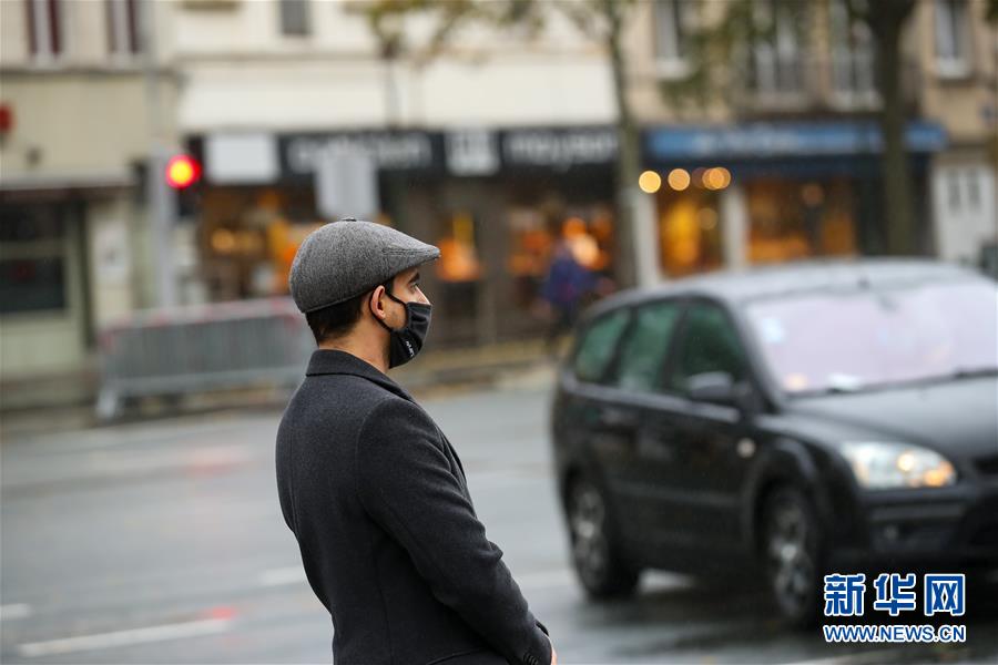 10月24日,在比利時布魯塞爾,一名男子佩戴口罩出行。